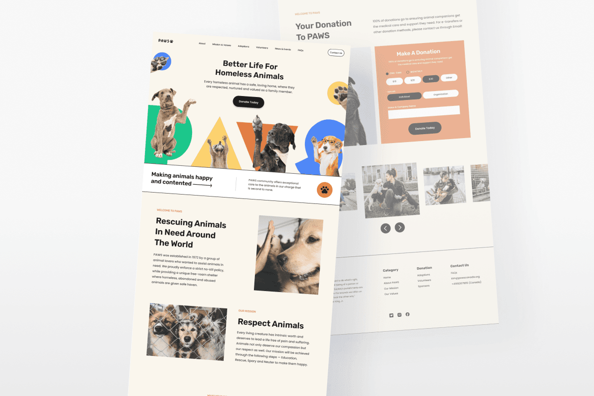 Creating a landing page for a Toronto non-profit animal charity to support their mission.