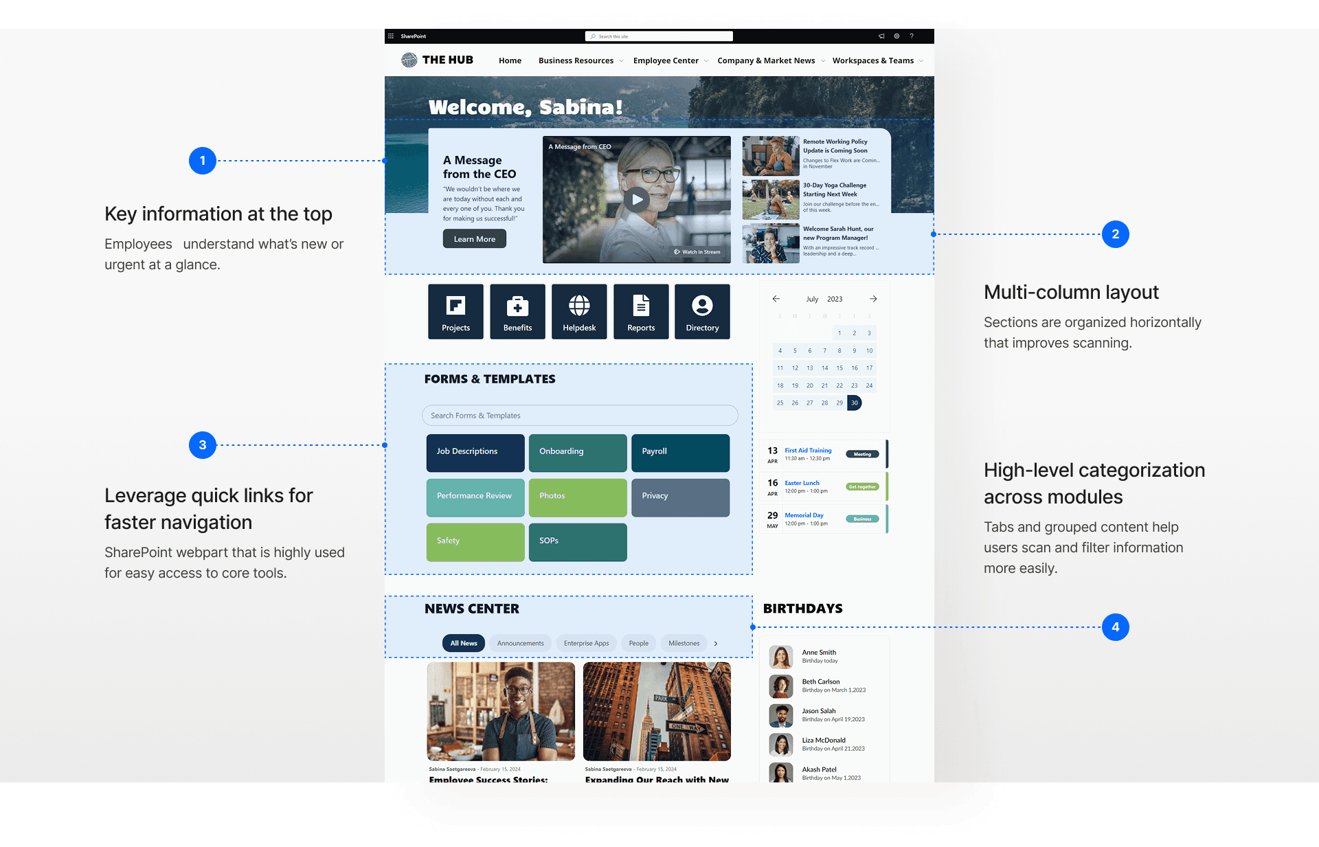 Overall, The designed hubs made it easier for teams to find what they needed and stay updated. They also helped bring more consistency and engagement across the organization.