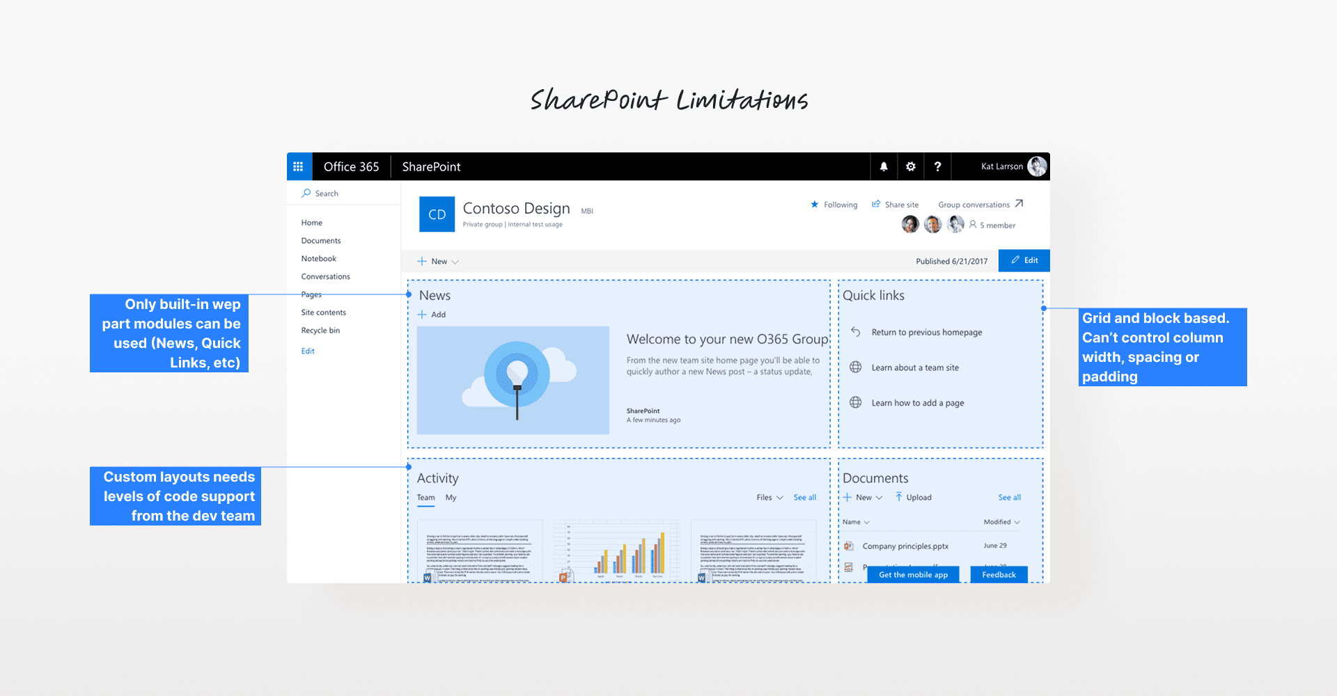 In the meantime, I also had to quickly get up to speed with how SharePoint works. I explored the tool hands-on, tested different modules, and carefully reviewed our brand guidelines. Here’s what I learned along the way.